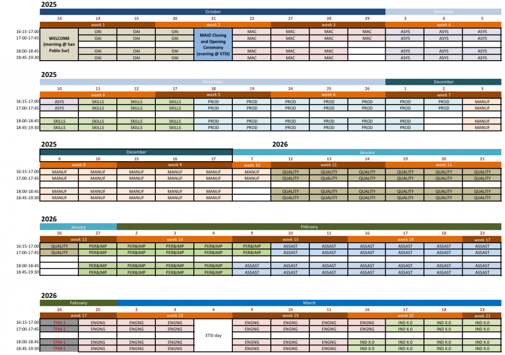Calendar Download PDF MASTER in Aeronautical Industry Operations (3rd Edition – 25/26) NOTE 1: Session in Classroom = 45’